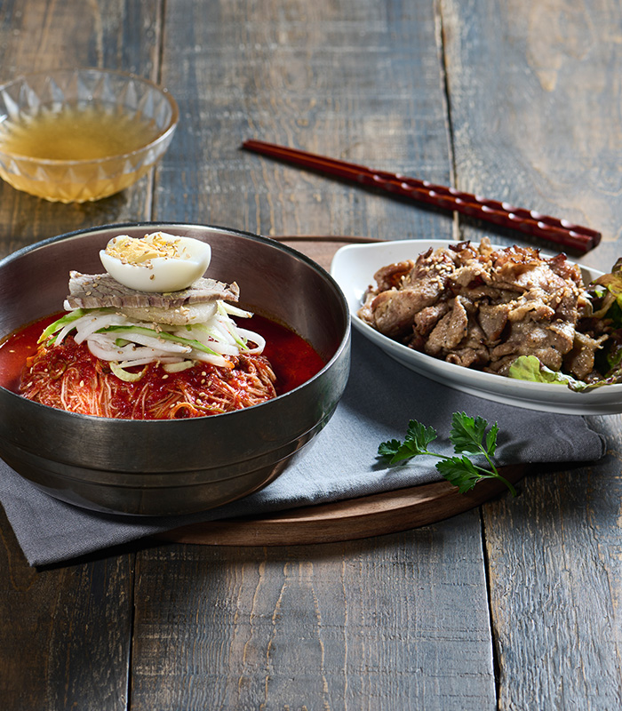 국산참숯에 구운 숯불고기 + 냉면 + 김치 + 냉면무채
